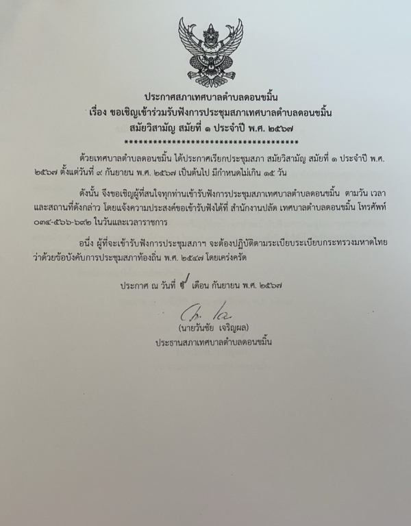 ขอเชิญประชาชนเข้าร่วมฟังการประชุมสภาสมัยวิสามัญ สมัยที่ 1ประจำปี 2567