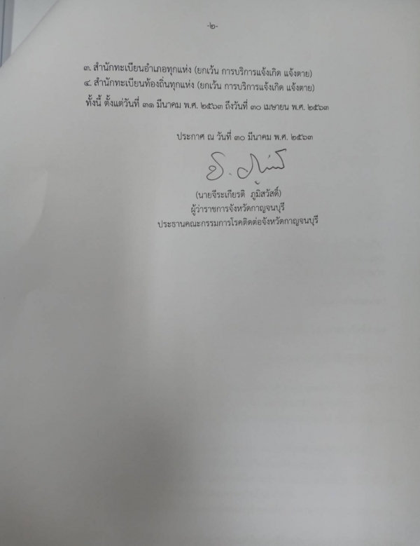 คณะกรรมการโรคติดต่อจังหวัดกาญจนบุรี สั่งปิดสถานที่ราชการเป็นการชั่วคราว