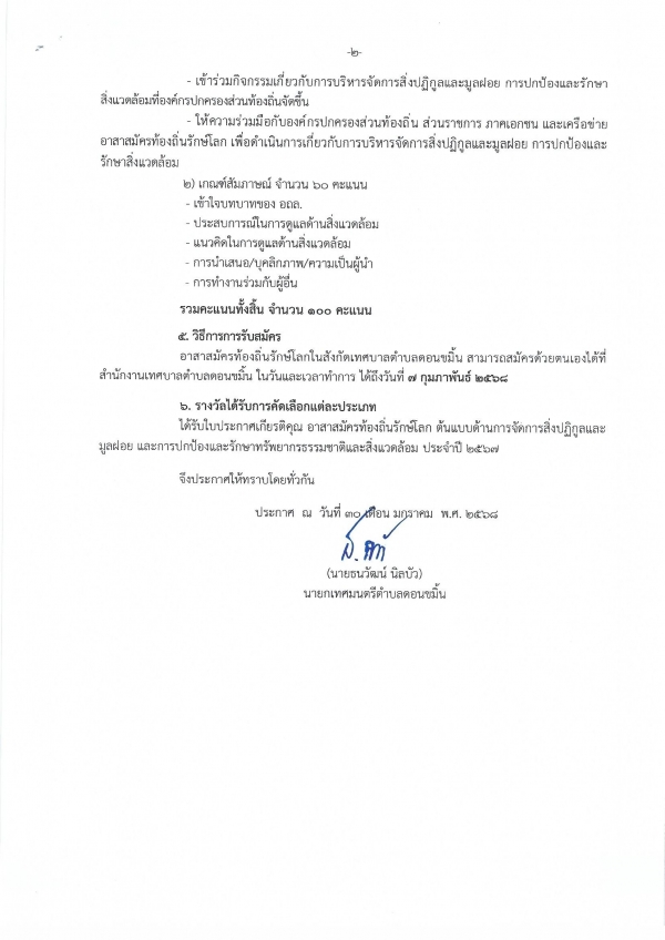 ประกาศหลักเกณฑ์การคัดเลือกอาสาสมัครท้องถิ่นรักษ์โลก