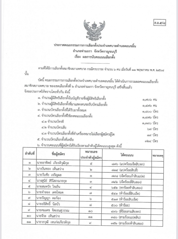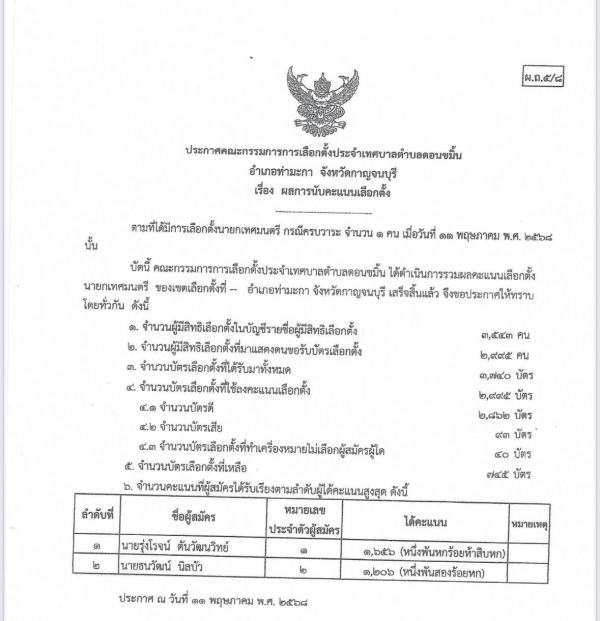รายงานผลการนับคะแนนเลือกตั้งนายกเทศมนตรีตำบลดอนขมิ้น และสมาชิกสภาเทศบาลตำบลดอนขมิ้น ณ ศูนย์อำนวยการการเลือกตั้งประจำเทศบาลตำบลดอนขมิ้น