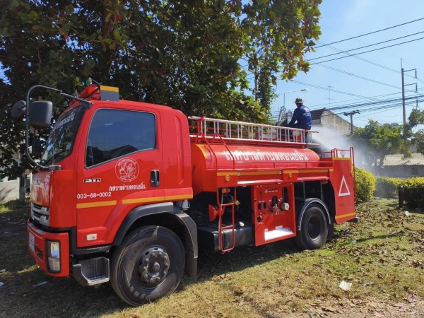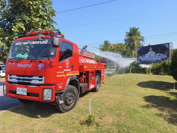 เจ้าหน้าที่งานป้องกันและบรรเทาสาธารณภัยเทศบาลตำบลดอนขมิ้น ดำเนินการรดน้ำต้นไม้ตามซุ้มป้ายพระบรมฉายาลักษณ์ฯ ครบทั้ง 5 หมู่